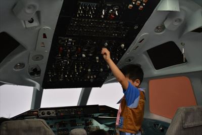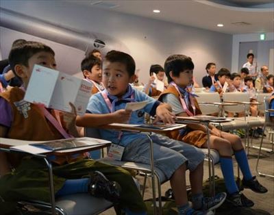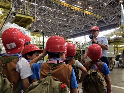 教室と展示室でお勉強後、格納庫で間近に見学しました。
