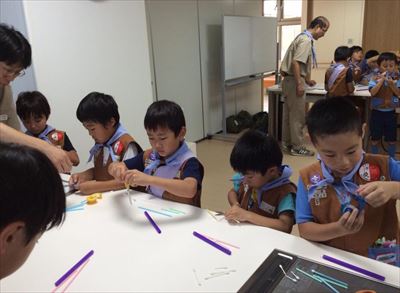 ビーバー隊の夏キャンプは、毎年大体お盆前後の土日を含めた3泊4日で行います。プログラムは屋外で活動したり、屋内で活動したり、もりだくさん。スカウト達は、キャンプ期間中自分の荷物は自分で整理します。事前の準備で、どこに何が入っているか把握しておくことが大事です。