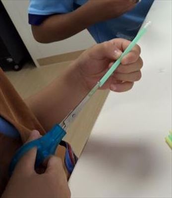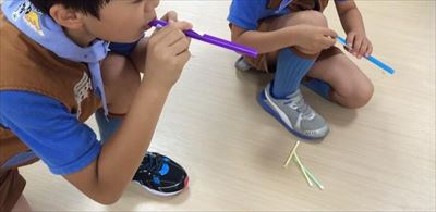 夏キャンプで使う吹き矢を作ります。みんな真剣。