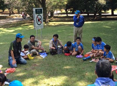 代々木公園でネイチャーゲームをしました。この集会は土曜日に行う自由参加集会です。