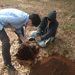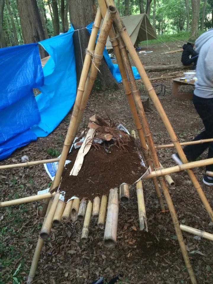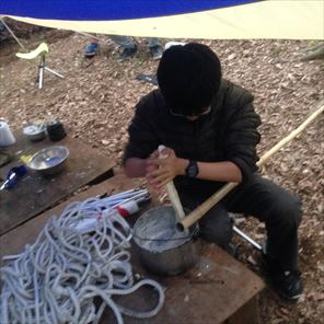 水穴堀り、薪割り、立ちかまど作成と着々と作業を進めます。
