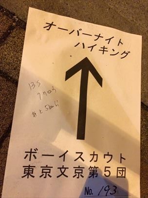 ボーイスカウト文京第5団は、毎年春にオーバーナイトハイクを実施しています。 ビーバー隊(年長〜小学2年)は保護者とスカウトで26kmを歩きます。ちなみに、カブ隊は組ごとにデンリーダーと一緒に40km,ボーイ隊はバディを組んで50kmです。