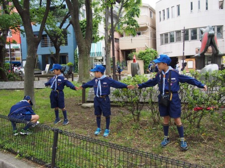 ボーイスカウトは、年代ごとに構成されたビーバー隊→カブ隊→ボーイ隊と上進していきます。カブ隊は、本格的なボーイスカウト活動であるボーイ隊の準備期間でもありますので、ボーイスカウトの基本的なスキルを習得していきます。