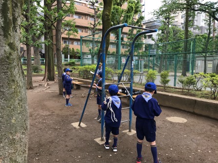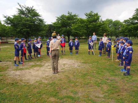今年の文京5団のカブ隊は、春夏秋と3回のキャンプを行います。春と秋は、都内の公園でテントを張っての野営です。あいにく、各小学校の行事と重なったため、約半分の人数でのスタートです。先ずは、開会式です。楽しいキャンプの始まりです。