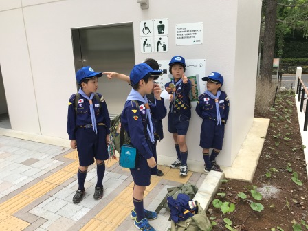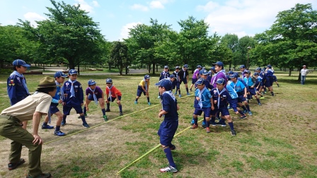 その後、組毎に分かれて、ポイントラリーを行いました。文京5団のカブ隊は、6つの組で編成されています。各組がポイントを競い合って、ポイントが高い組は、表彰を受けることができます。このように、単調なスキル訓練ではなく、ポイント競うことによって、スカウト達は、楽しみながらスキルを習得することができます。