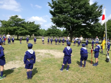 そして、最後は、表彰式と閉会式です。楽しいキャンプも終わりです。初めて野営を行ったうさぎスカウト(3年生)、昨年の経験を生かしたしかスカウト(4年生)、リーダーシップを発揮したくまスカウト(5年生)、どのスカウトも貴重な体験ができたと思います。この経験を夏キャンプ、そして秋キャンプに生かしていきたいと思います。お疲れ様でした。