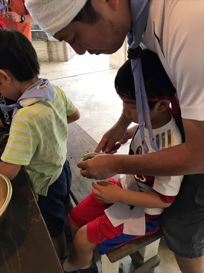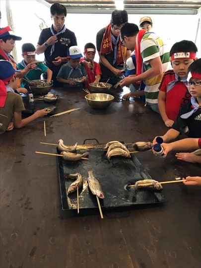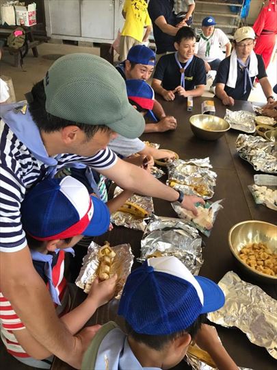 最初はみんな早く帰りたさそうな顔をしていましたが、日に日に班の絆も深まり小6から中3のすべてのスカウトがたくましい顔になっていました。特に中2スカウト4名は、班を盛り上げようとそれぞれが試行錯誤に各々の班に合ったやりかたで良い雰囲気を作ろうとしていました。彼らの努力が夏キャンプを成功へ導いてくれたと思います。