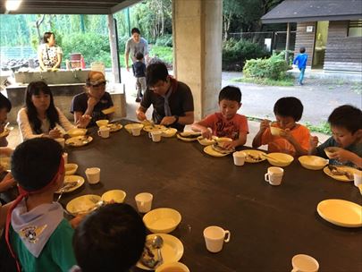 ビーバー隊のキャンプは青少年自然の家等の施設にて宿泊、食事をとります。しっかり野菜も食べましょう。