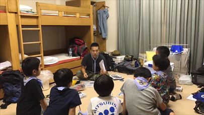 ビーバー隊は小2、小1で構成されます。 小2はビックビーバーとなり、「お世話係」として自分の組をまとめます。 キャンプの夜には、ビックビーバーだけが集まるミーティングがあります。 その日の活動の良いところ、反省をして、次の日の活動に備えます。