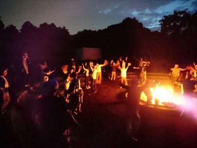 最後の夜はキャンプファイヤー。厳かに、でも弾けて楽しい時間です。
