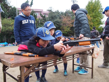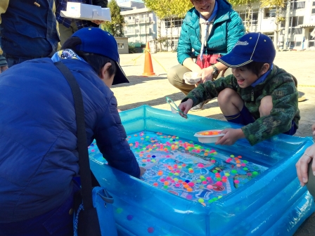 ゲームコーナーには、射的、スーパーボールすくい、ストラックアウト、けん玉、釣りゲームなどが並びました。有料ゲームでは、成績に応じて、おもちゃやお菓子等の景品ももらえます。それを選ぶのがまた楽しい!