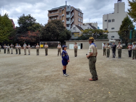ウルトラクイズが終わると、早くも閉会式。この日は、くまスカウト(小5)のひとりが、スーパーカブになりました。