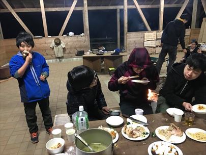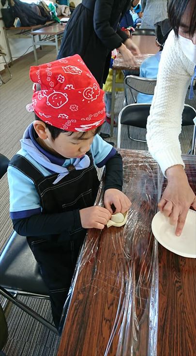 ビーバー隊(小1~小2)のクリスマス集会は、保護者と一緒に中国風餃子を手作り!