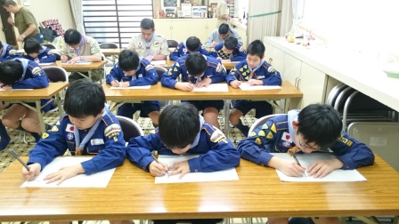 皆精神を統一して、写経をしています。スカウトだけでなく、リーダも精神統一!