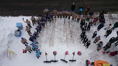 ボーイスカウト(小6、中学生)、ベンチャースカウト(高校生)はバディ(二人以上でペアになって安全確保)を組んで滑ります。