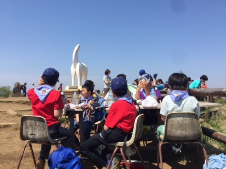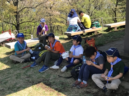 当日、4月という夏日の中、スカウト達は、一生懸命歩きました。