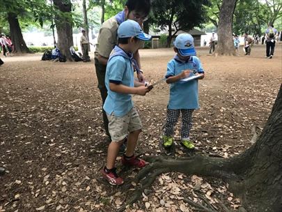 ビンゴカードを使った自然観察はスカウト全員夢中!