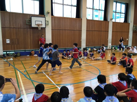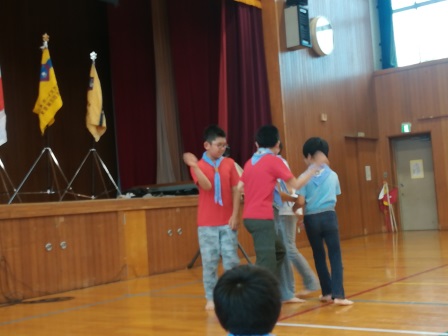 隊列の作り方を工夫したり、ソロパートを作ったり、大きな声を出したり。随所に各組の工夫が込められた、楽しい作品を作り、発表してくました。