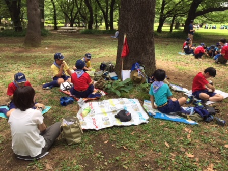 一日、広大な公園を歩き回って、デンリーダーたちはくたくたでした。スカウトたちはどうだったなか?