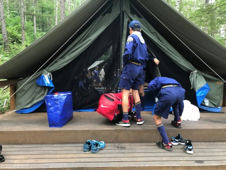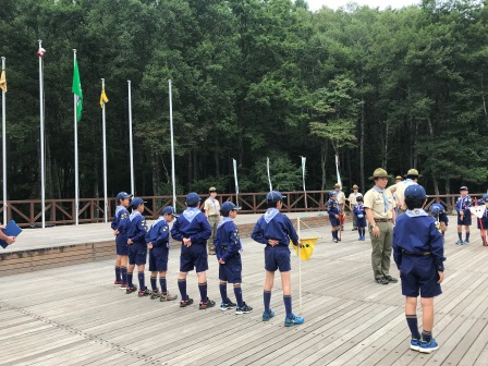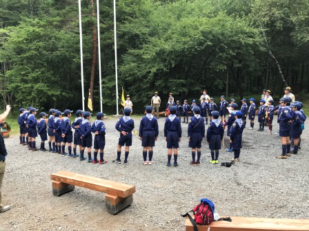 2日目になりました。キャンプの一日は点検と朝礼から始まります。