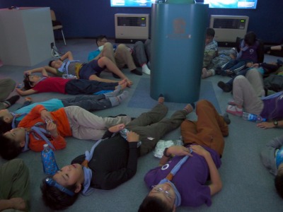 社内では、ロープワークの練習をする組、ソングで盛り上がる組など、各組なりに過ごします。