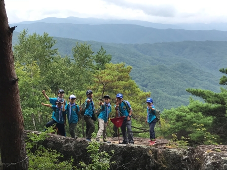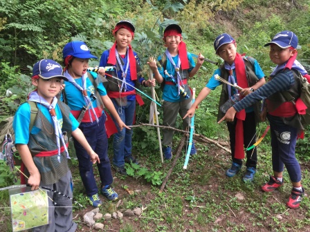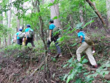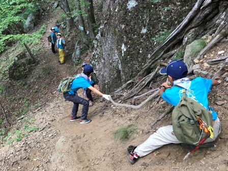 山道を行くスカウトたち。冒険気分が盛り上がります。