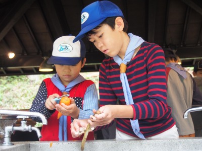 先輩スカウトから上手な火のおこし方などを学んだりもします。