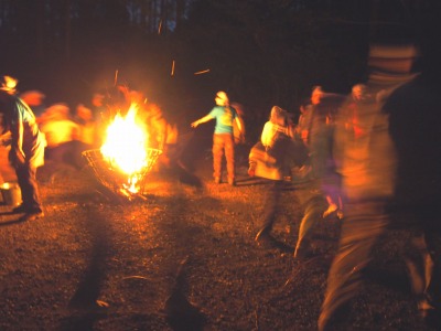 夜はキャンプファイヤーです。各組で練ったスタンツやソングなどで盛り上がります。頭上には綺麗な星空が輝いていました。