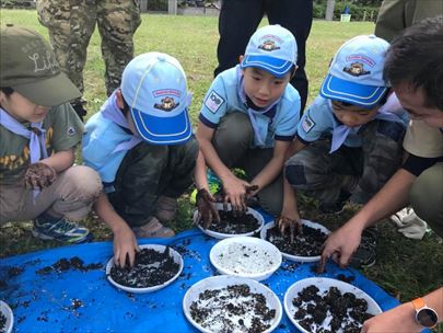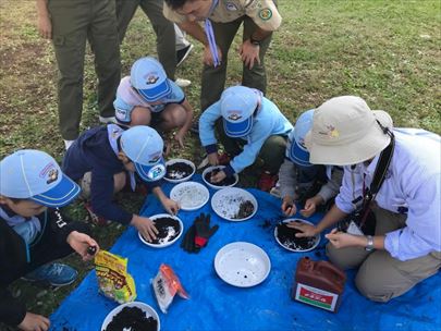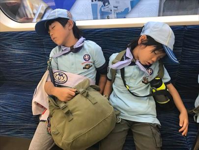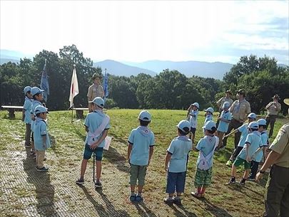 夜、ビックビーバー(小2)はビックビーバーミーティング。今日一日の振り返りと明日の準備をします。みんな驚くほど下のスカウトの様子を把握しています。 同行した保護者とすると、日々日々の成長を目の当たりにする瞬間です。