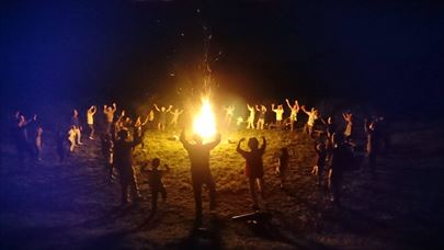 厳か に始まり、思いっきり弾けるキャンプファイヤー。 仲間の絆が強まりながら夜が更けていきます。