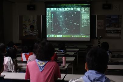夜、星空を観察。天文博士の説明を聞いた後、夜空を見ます。