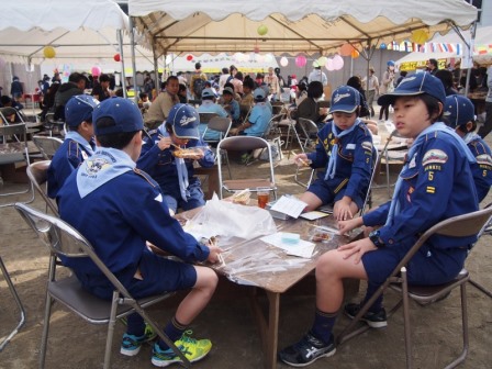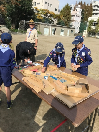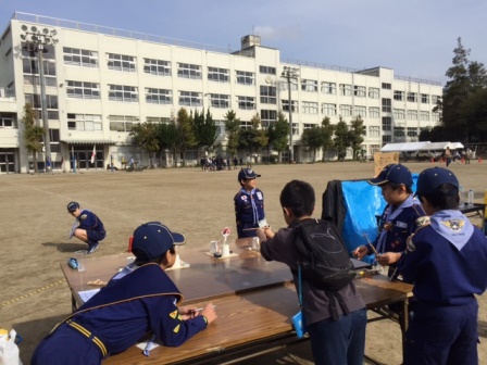 カブ隊は、おもてなしとして、各組で工作し、ゲームを提供。お客さんたちはみんな喜んで頂いたようです。