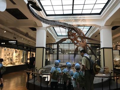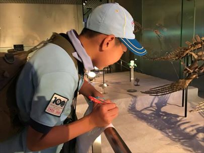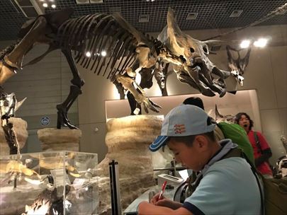 今日は国立科学博物館に来ました。展示説明の文章から、「こ」「く」「り」「つ」「か」「が」「く」「は」「く」「ぶ」「つ」「か」「ん」それぞれの字を含む用語を見つけ、書き込むゲームを片手に回りました。