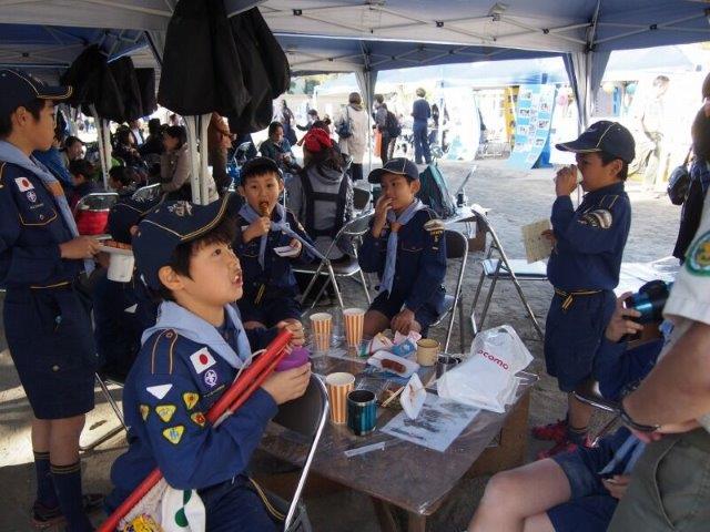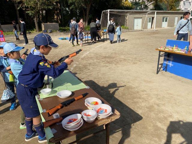 カブ隊は、それぞれの組で趣向を凝らした自作のゲームで、来場者の方々をおもてなし。