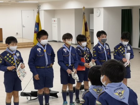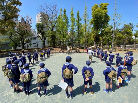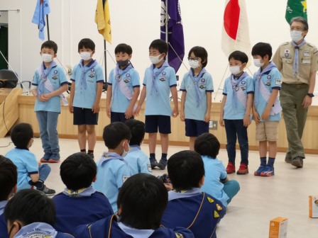 ビーバー隊(小1〜小2)からカブスカウト隊(小3〜小5)に新しスカウトを迎え入れ、新しい1年の始まりだ。